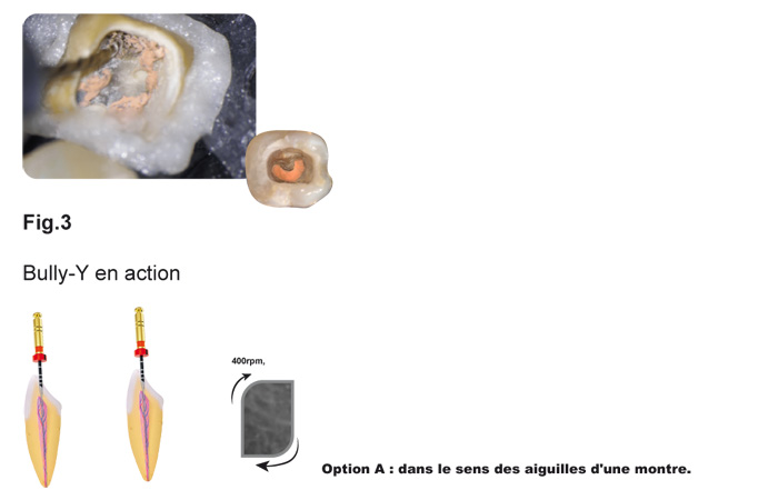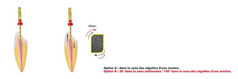 En revanche, jusqu’aux 2 derniers mm et après, le mouvement rotatif est fortement conseillé pour préparer et finaliser le retraitement.